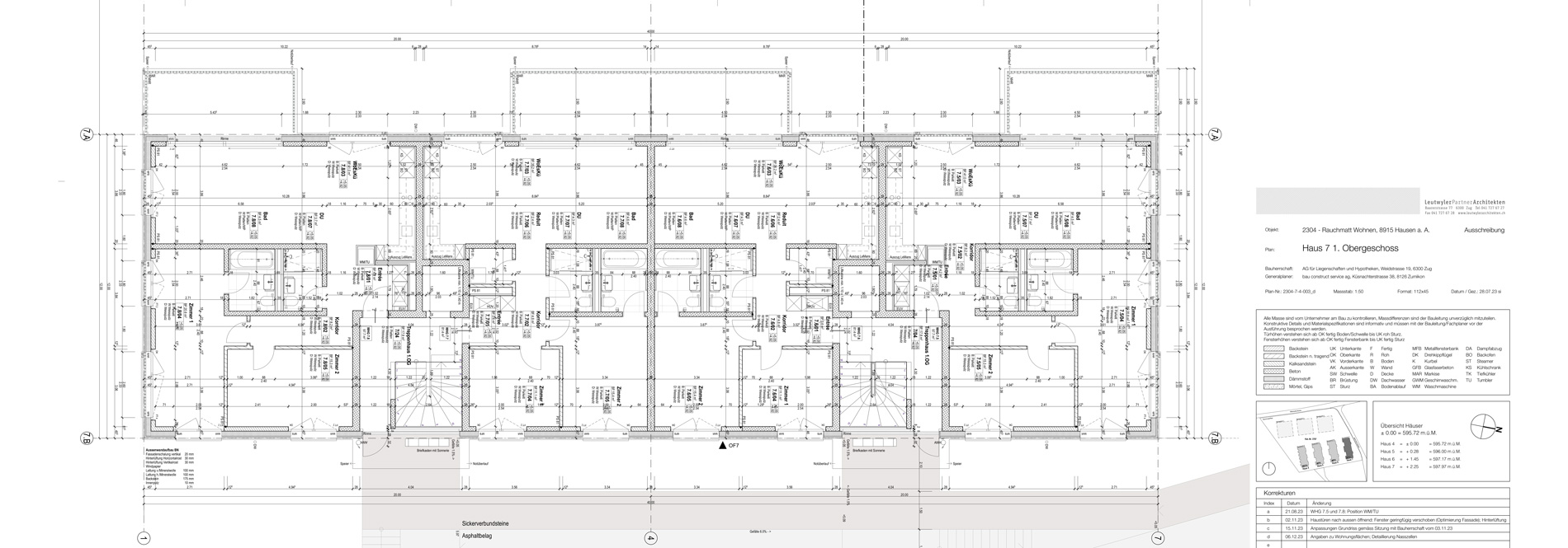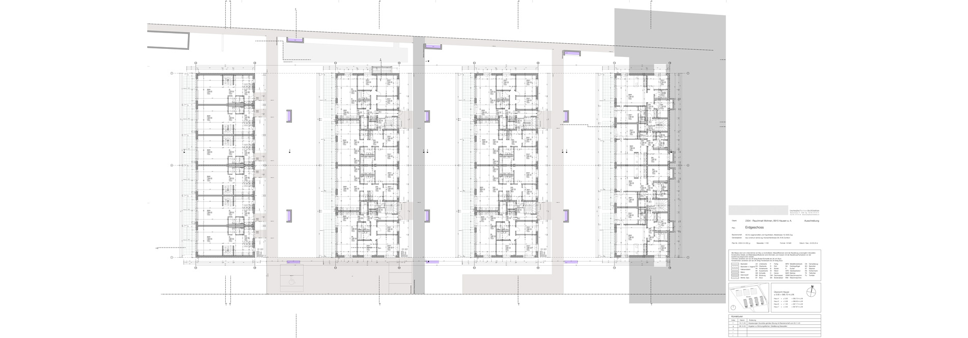 Die Wohnhäuser sind so angeordnet, dass die Reiheneinfamilienhäuser in vorderster Reihe von einer freien, unverbaubaren Sicht auf Felder, Natur und Berge profitieren. Dahinter befinden sich drei Mehrfamilienhäuser mit einem klar gegliederten und modernen Wohnkonzept.